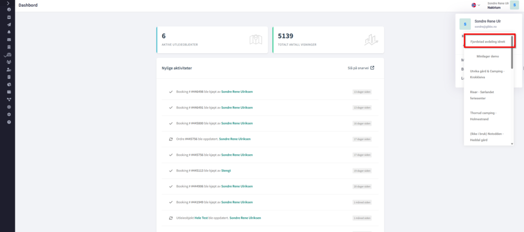- Øverst til høyre viser hvilken konto du er aktiv som. Klikk på den for å åpne nedtrekksmenyen.