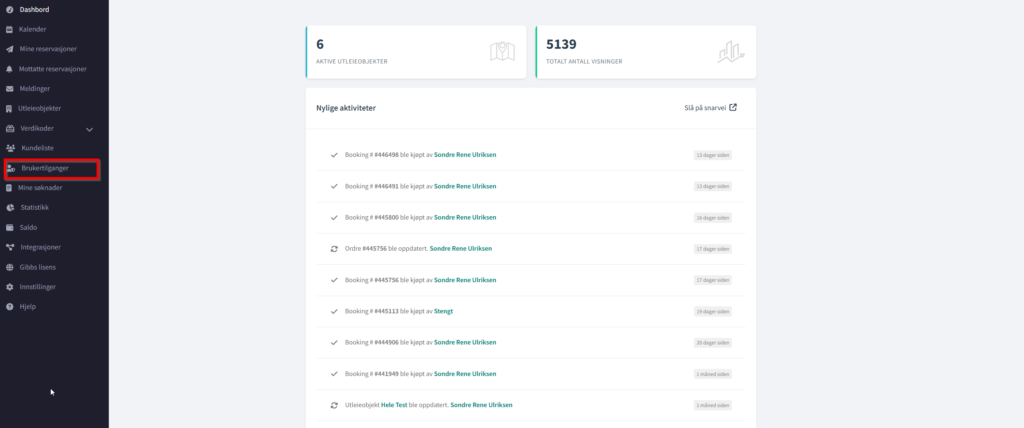 4. Åpne sidepanelet til venstre og deretter velg «Brukertilganger»